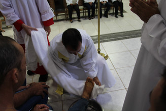 Na noite desta Quita-feira Santa (18/04) aconteceu na Matriz São João Paulo II a celebração do Lava-pés e instituição da Eucaristia. Um grande número de fiéis participou da missa que inicia o Tríduo Pascal, momento mais importante da liturgia da Igreja, no qual acompanha as últimas horas de Jesus, e que só se encerra no Domingo de Páscoa.